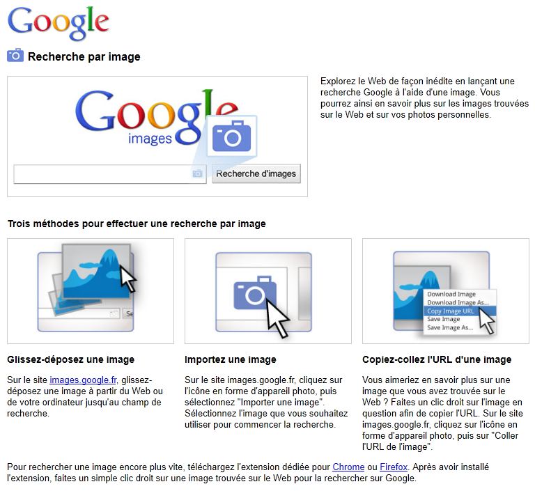 Google planchait sur le sujet depuis un moment déjà car j’en avais entendu parler en 2009 je crois. Et bien il semblerait que la technique soit au point. Vous pouvez maintenant chercher des images similaires à celle qui est sur votre écran, et ceci le plus simplement du monde à l’aide de l’une de ces quatre possibilités :